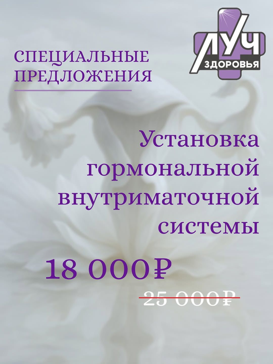 До конца апреля 2026 мы предоставляем скидку 7000 руб. на услугу установки гормональной внутриматочной системы.