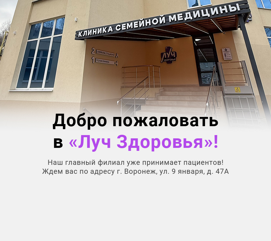 Клиника «Луч Здоровья» — это современный медицинский центр для всей семьи с филиалами в Воронеже. Мы объединили профессионализм врачей, передовое оборудование и заботу о каждом пациенте, чтобы помогать взрослым и детям становиться здоровыми и оставаться такими надолго.